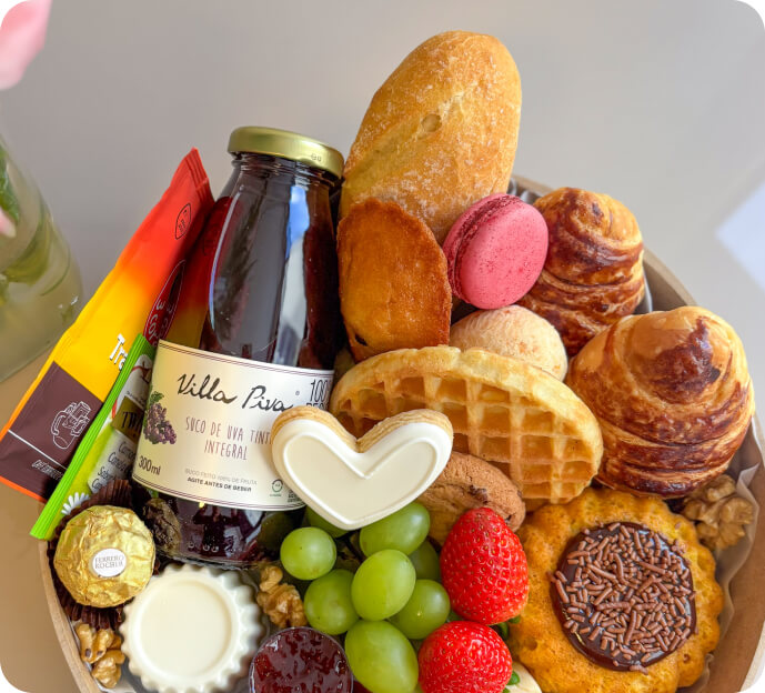 Desde 2020 atuo no ramo da confeitaria, criando experiências afetivas. E ao longo dessa jornada, eu descobri o poder das cestas de café da manhã como forma de presentear com carinho, elegância e propósito.